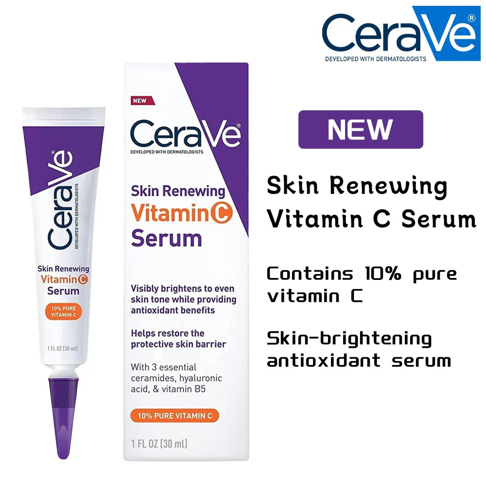 Cerave Skin Renewing Vitamin C Serum: Achieve radiant skin with this potent vitamin C formula. Fades dark spots, fine lines, and evens skin tone. Protects against environmental stressors. Suitable for all skin types. A must-have for a brighter complexion!